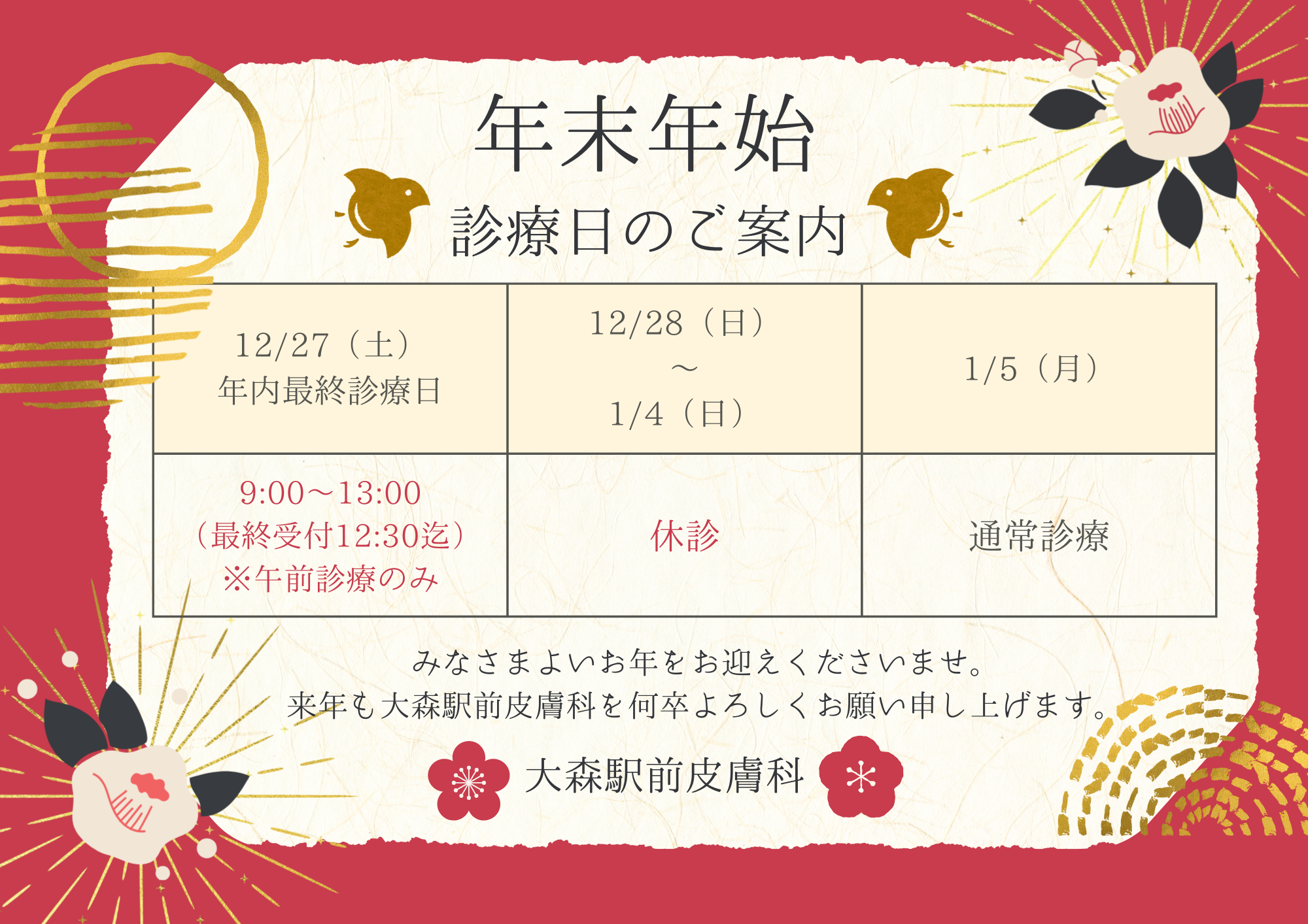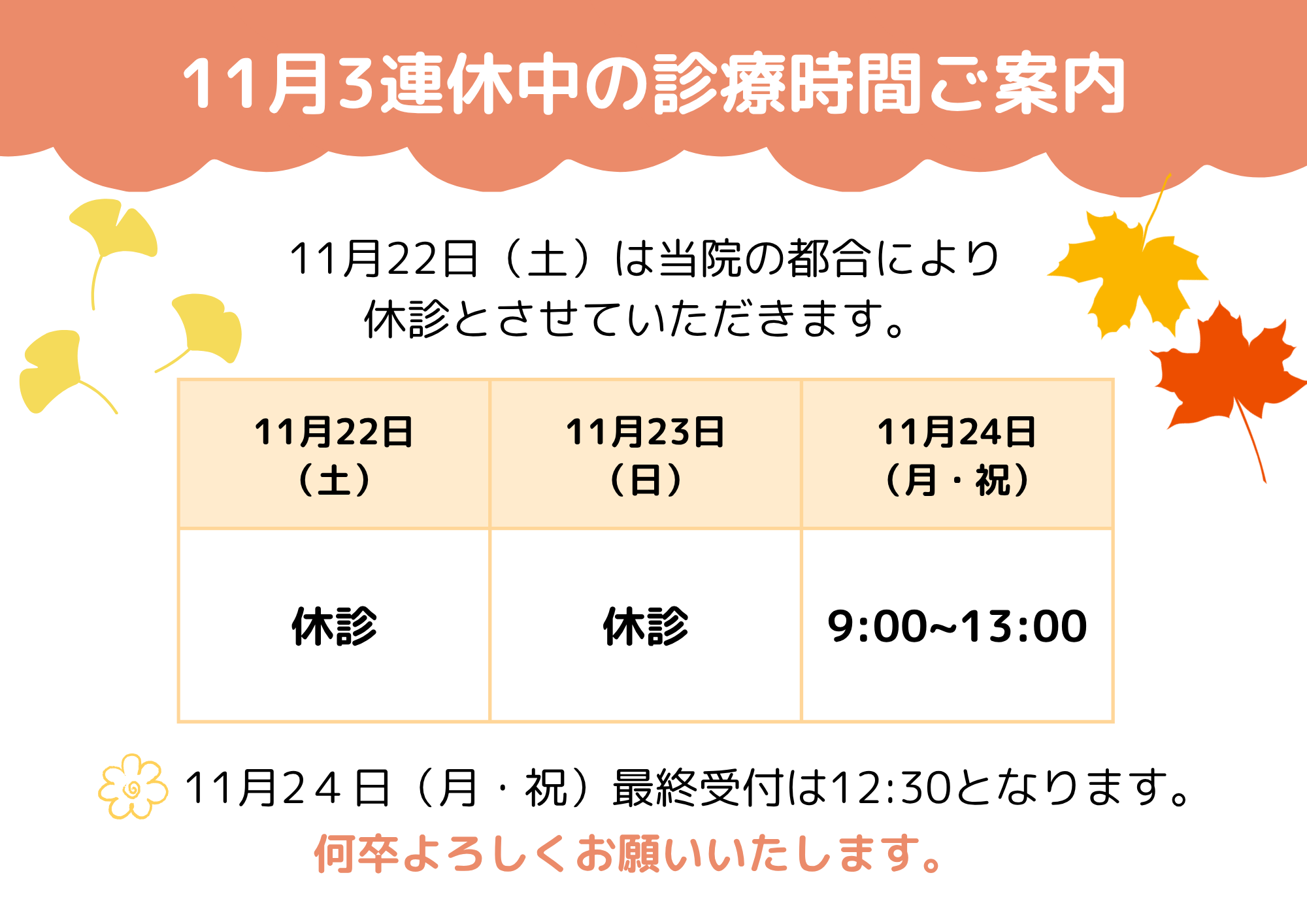休診期間中はご不便をおかけしまして誠におそれいりますが何卒よろしくお願い申し上げます。